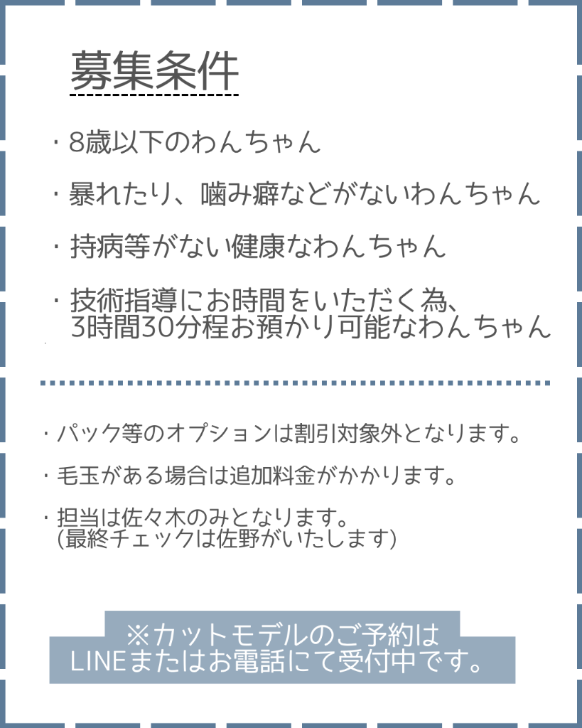 Dog salon Kotteではカットモデルにご協力いただけるわんちゃんを募集しております🐾