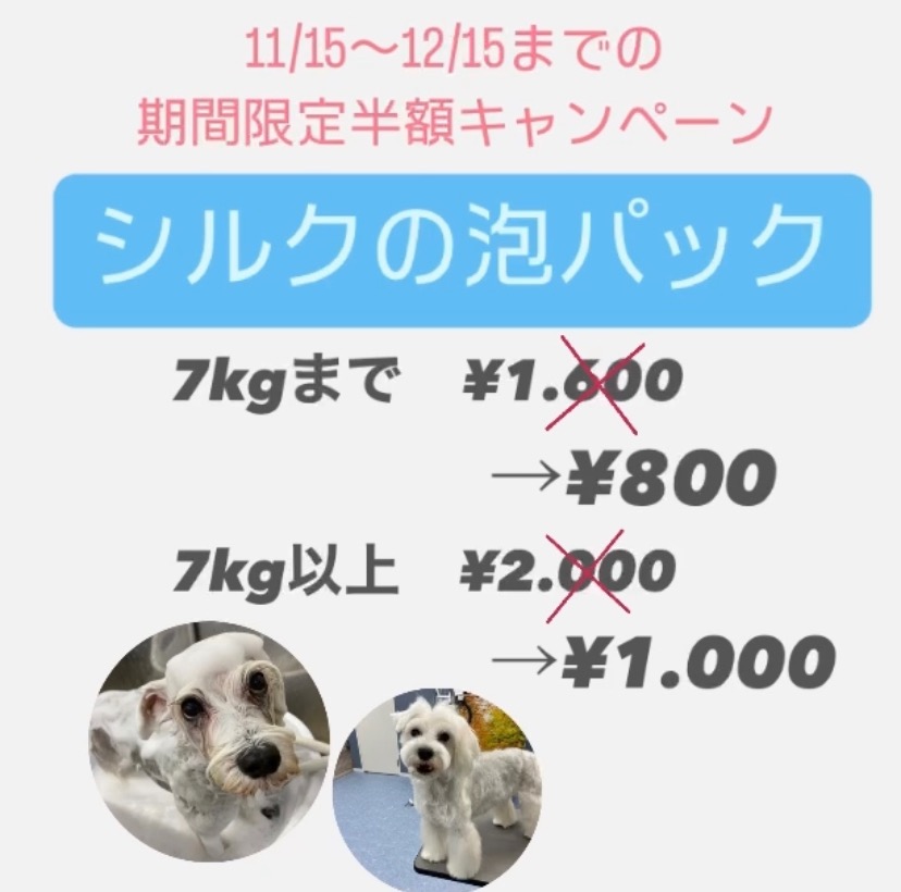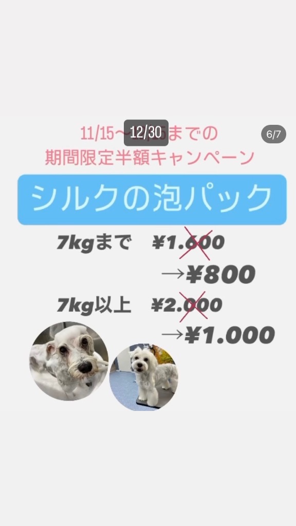※爪切り等のケアに関して、イヤイヤが強いわんちゃんは無理のない範囲でやらせていただきます。