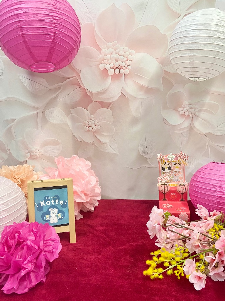 浜松市中央区の小型犬専門のトリミングサロン「Dog salon Kotte(ドッグサロンコッテ)」です。フォトブースの背景が変わりました☺︎この背景は3/20まで📷
